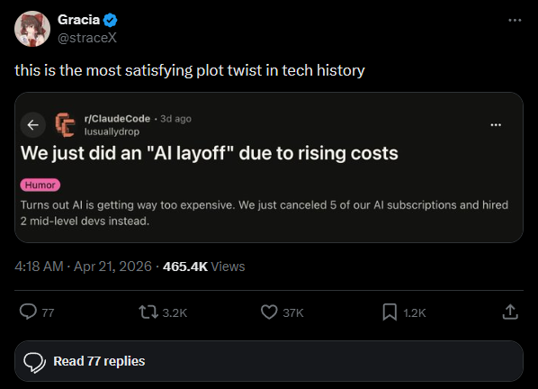 I do not expect AI use to collapse. I expect selection pressure: teams quietly cut low-yield usage, keep high-yield workflows, and become stricter about where models actually create net value. Useful patterns remain, hype-heavy patterns fade.